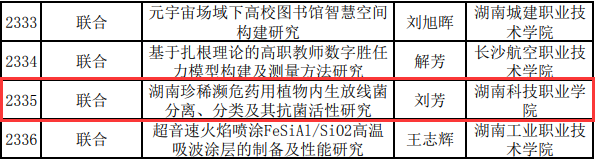 近日,在湖南省科学技术厅公布的关于2024年度湖南省自然科学基金拟立项项目的公示名单中,我院刘芳老师