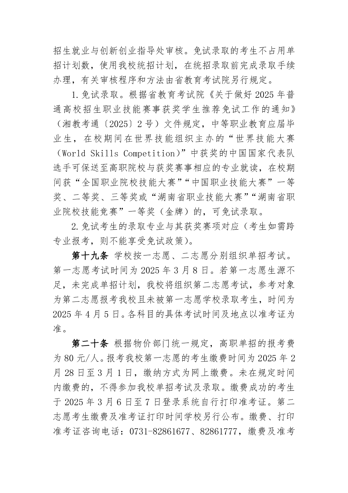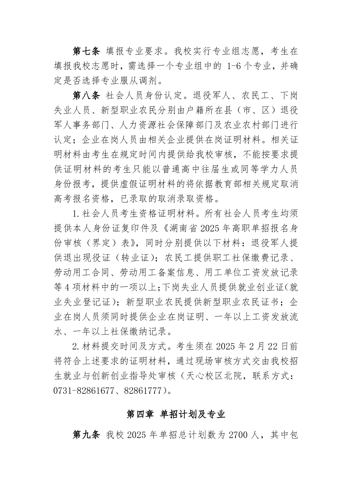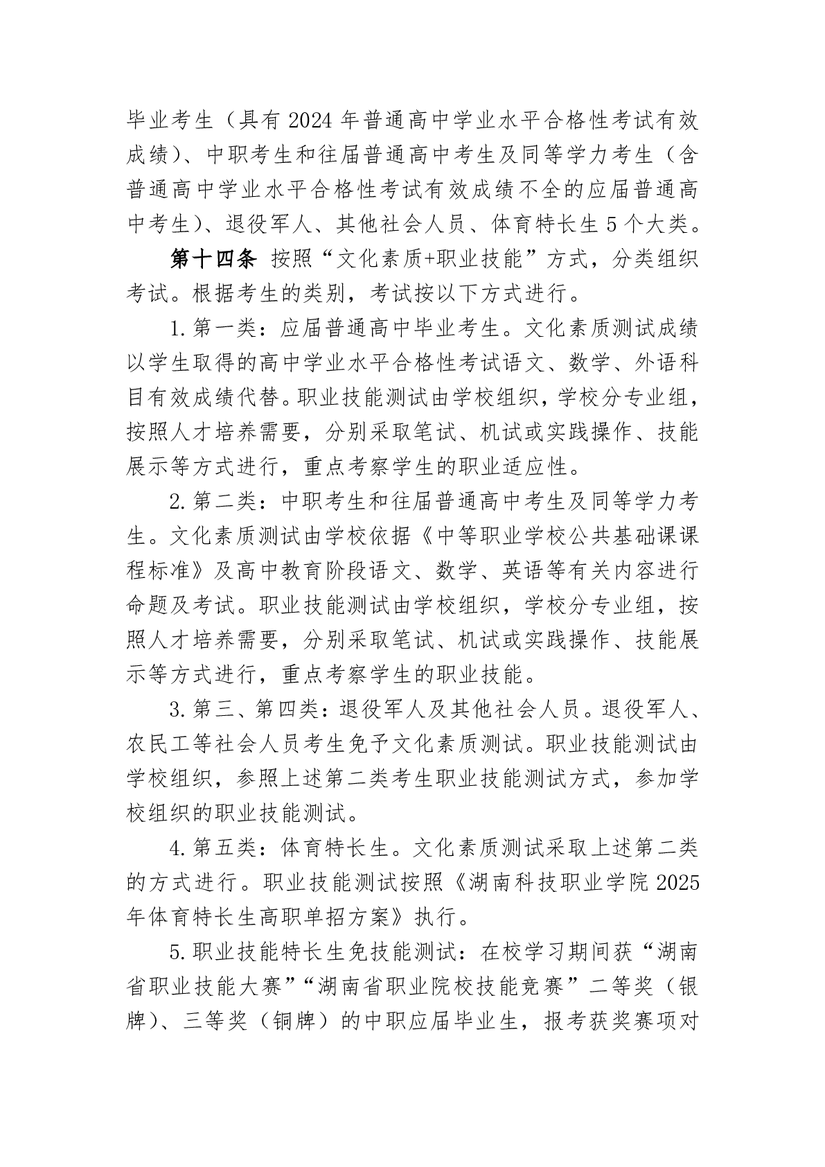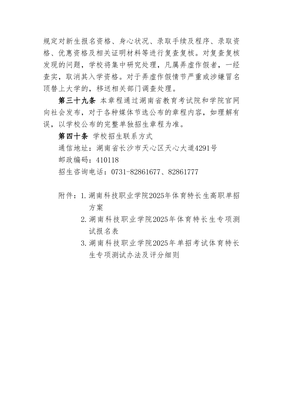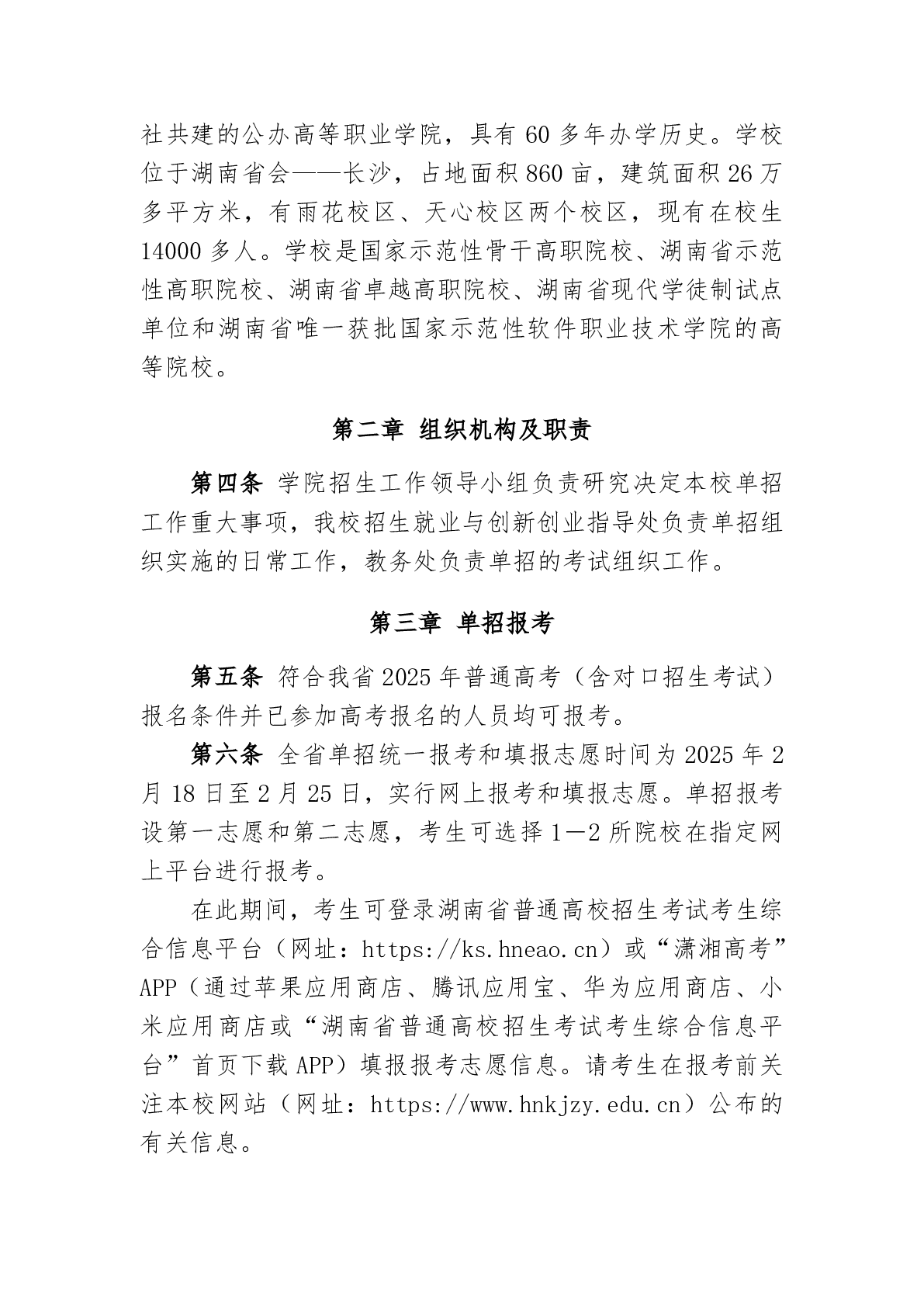 湖南科技职业学院2025年高职单招章程