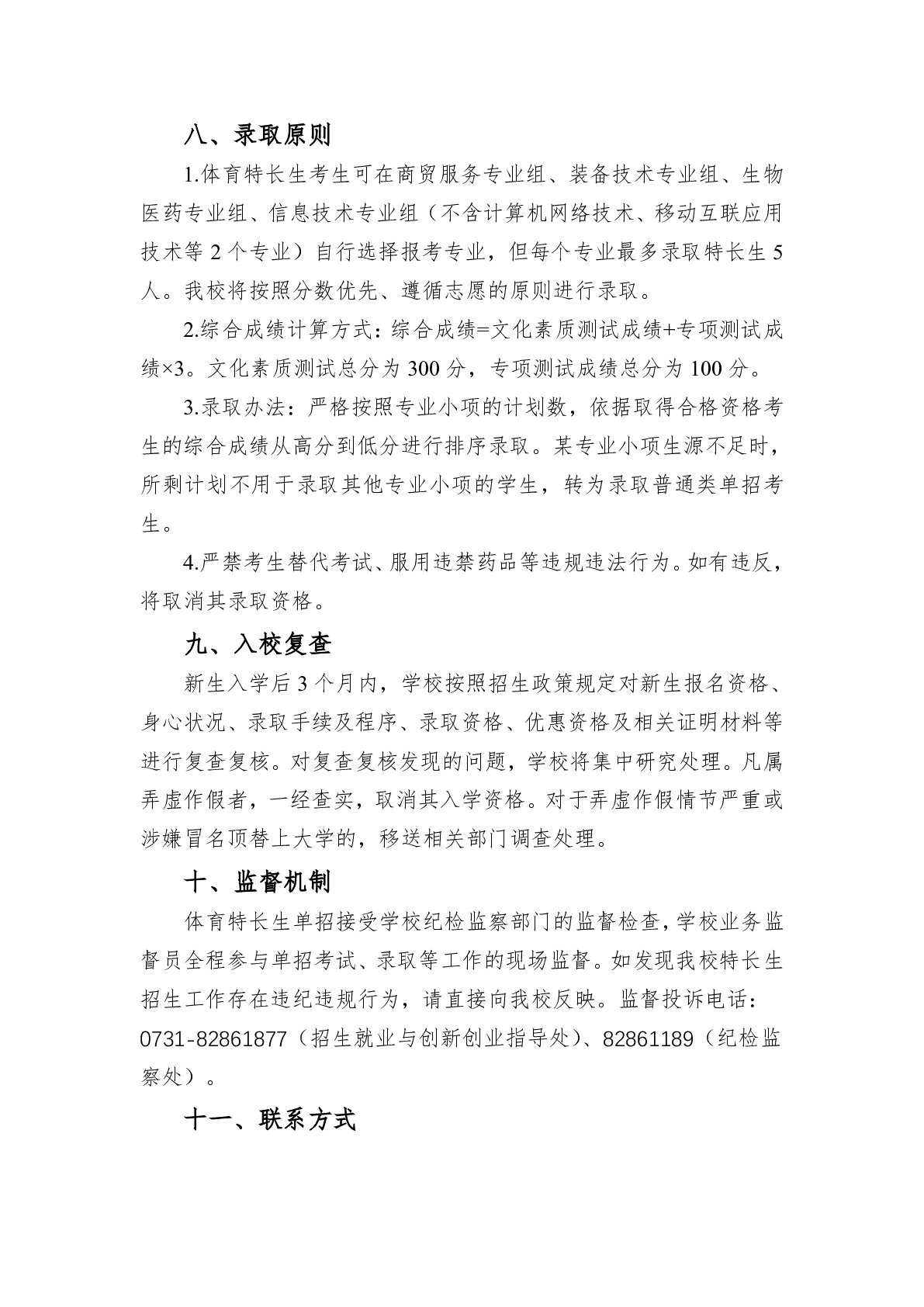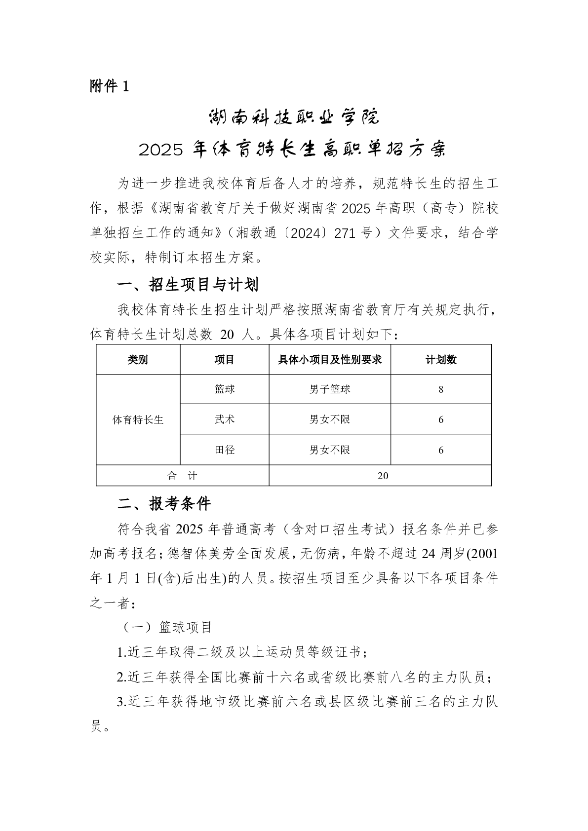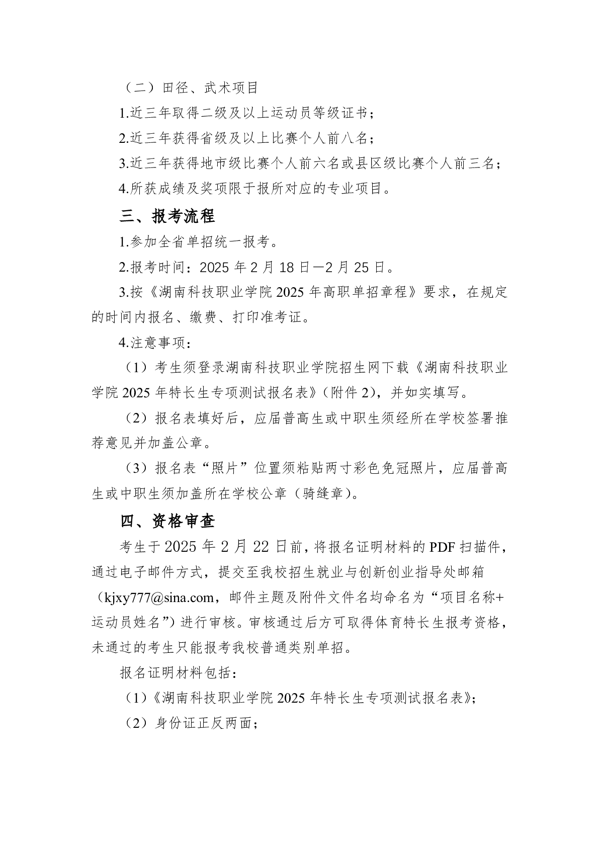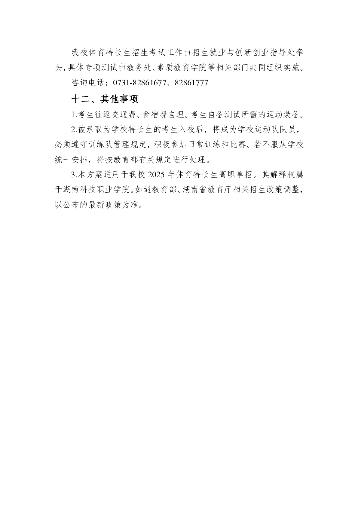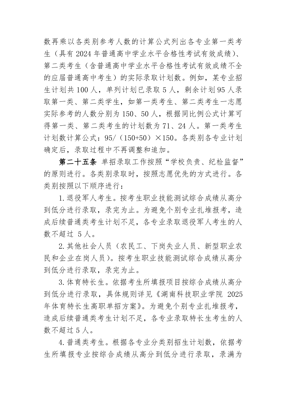 湖南科技职业学院2025年高职单招章程