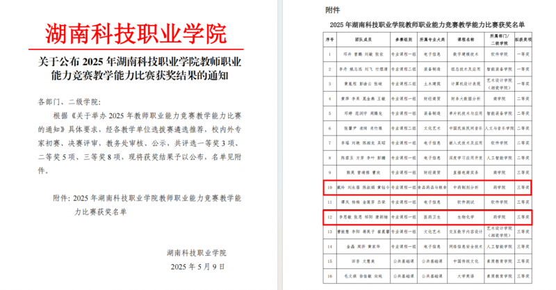 多项荣誉的获得,是药学院持续重视教学质量管理、推动教师专业发展的成果体现。学院将以此为契机,进一步强化教学研究与课堂改革,营造“重教学、强能力、促发展”的良好氛围,为培养高素质医药类技术技能人才提供坚实保障。